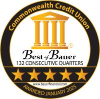 BauerFinancial has once again awarded Commonwealth Credit Union with their Best of Bauer 5-star rating for 132 consecutive quarters.